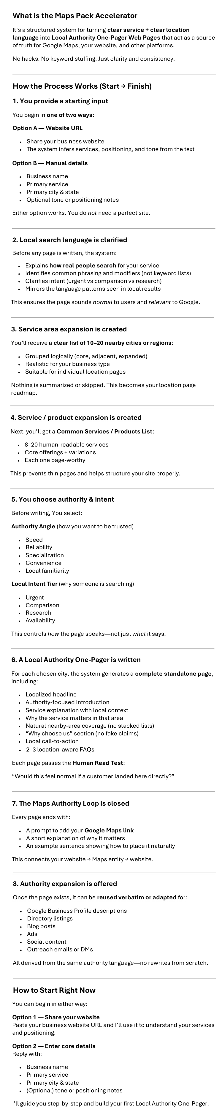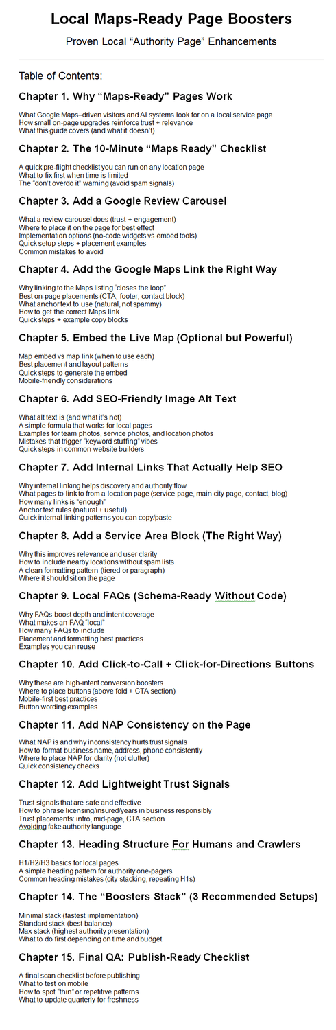 NOTE: All the client-catching marketing content here was created from the perspective of a Agency/Consultant available to Provide Maps Optimization Services, Covering Proven Business Building Plans, Tips and Resources - Along with DFY Lead-Gen Content and Client Closing Assets.