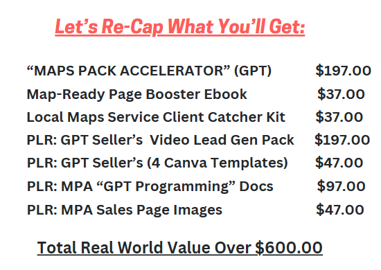 You’ll find this bundle to Packed with Proven Closing Tools and Business Building Resources that makes all the included agency content work to Drive You More Clients and More Monthly Contracts 24/7/365. Use these resources and tools to Grow your Google Maps Services Fast & Easy.